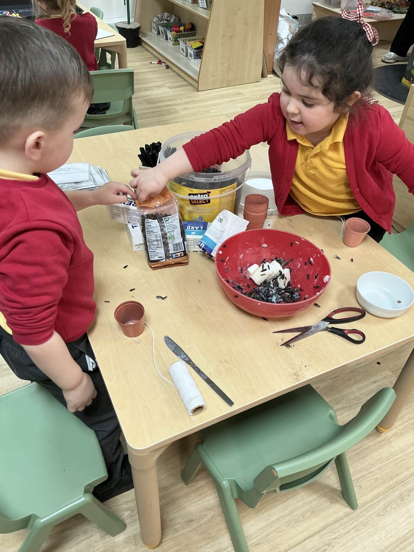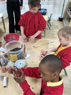 Poppy Class have focusing on taking care of their environment and alongside providing recycling bins for each class they have been planning ways to improve the FS playground and have decided to create an Eco garden. This is still in it’s infancy but a new compost bin has been purchased along with gardening tools. In the coming months the children will begin to plant and grow their own vegetables. As a start to the project of caring for our environment the children have been making bird feeders to encourage wildlife to the area and the children have been eagerly observing using their bird spotting charts.