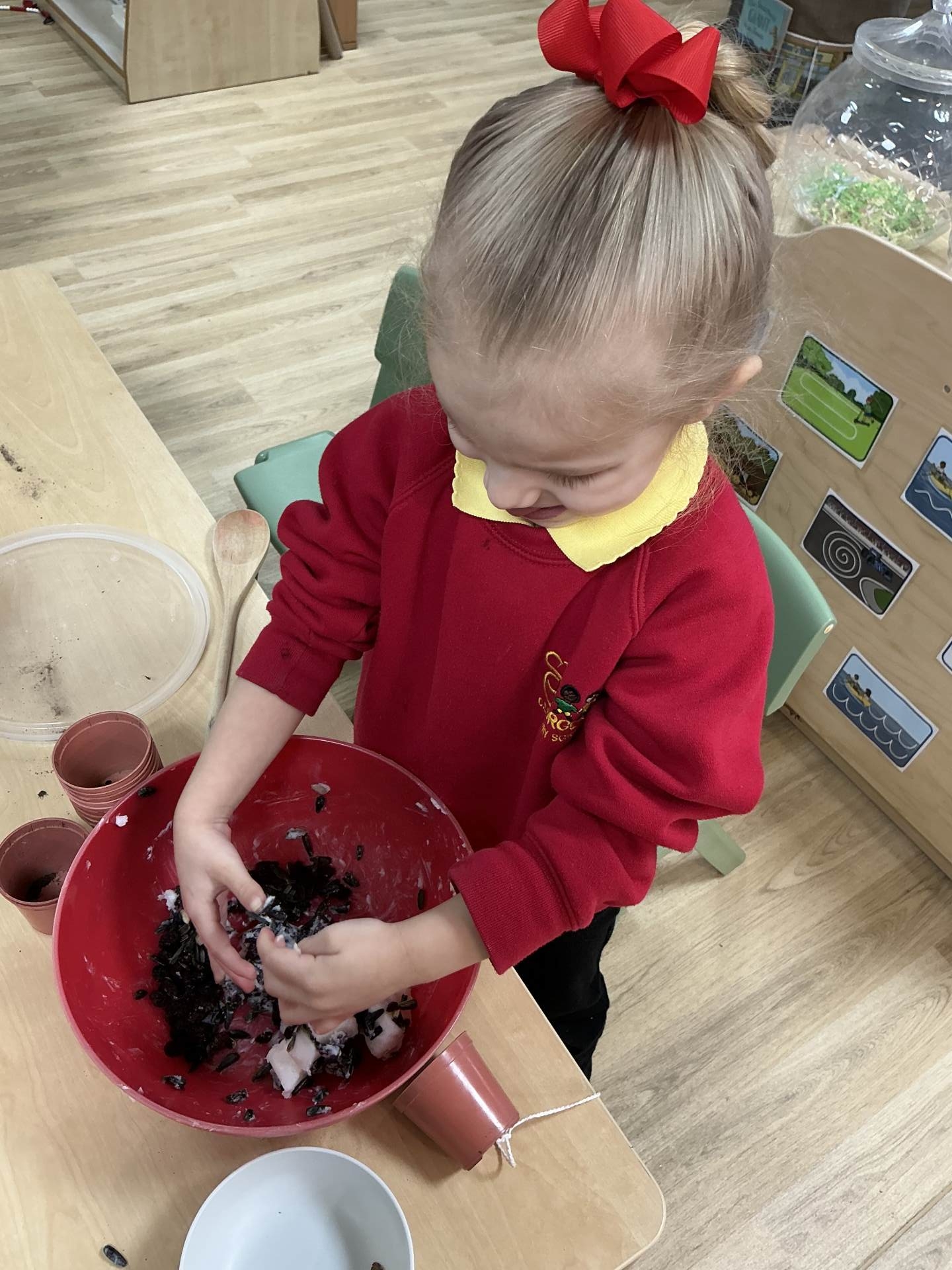 Poppy Class have focusing on taking care of their environment and alongside providing recycling bins for each class they have been planning ways to improve the FS playground and have decided to create an Eco garden. This is still in it’s infancy but a new compost bin has been purchased along with gardening tools. In the coming months the children will begin to plant and grow their own vegetables. As a start to the project of caring for our environment the children have been making bird feeders to encourage wildlife to the area and the children have been eagerly observing using their bird spotting charts.